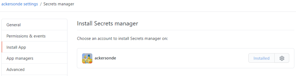 0. Create a new GitHub App in your organization. I called mine “Secrets manager” (aka <your-app>):