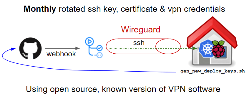 We’ve done our homework when it comes to security, but now it’s time to put our money where are mouth is and automate it. By setting an expiration timer on the cert validity, we’ve forced ourselves to do the right thing. The cron executes this script which rotates both the GitHub wireguard VPN client credentials and ssh deploy key & certificate on the 2nd day of every month.